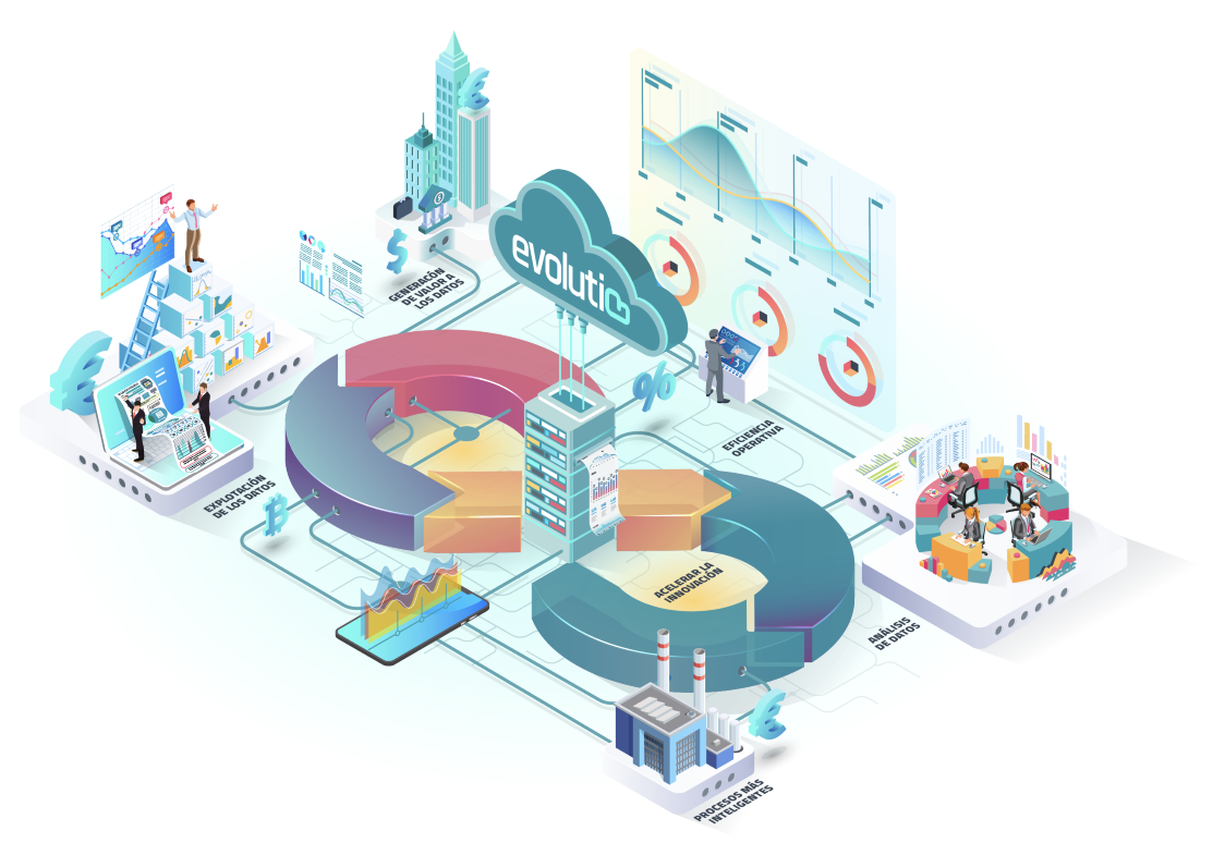 At Evolutio we help you choose the most suitable options for your business that allow you to take advantage of all the benefits of the cloud, whether it is a public or private cloud or a hybrid combination of both, or the flexible dynamic network, analysing your processes and providing you with the right skills, experience and security. We will seek the best way to collect and keep your data safe, accessible to the areas that need it, and guaranteeing its optimal exploitation. In this way, you will achieve the consistency in your operations, processes and employees necessary to scale the business, complying with current regulations, and squeezing your data to the maximum.